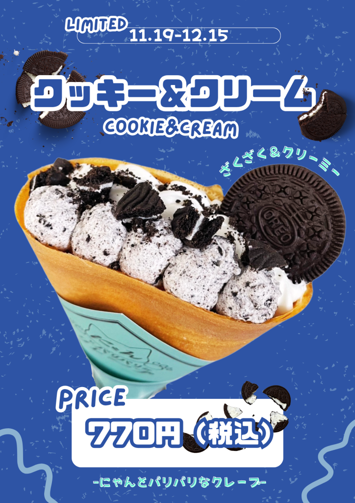 甘いクレープはみんな大好き『クッキー&クリーム』です💙