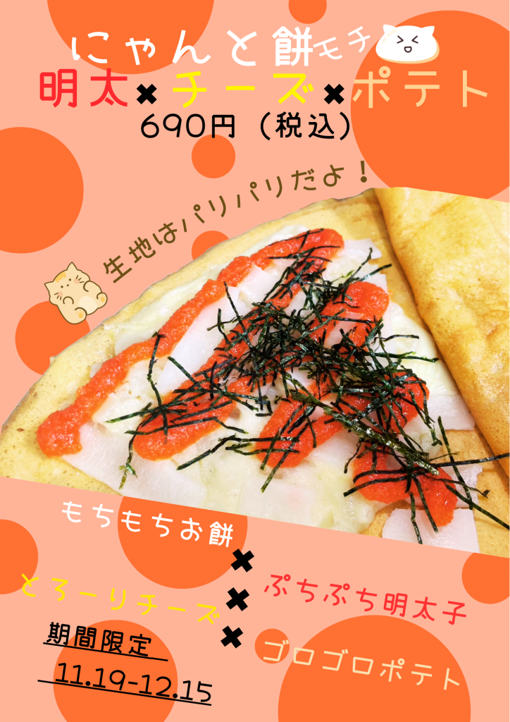 しょっぱいクレープは『にゃんと餅モチ明太チーズポテト』が出ました!