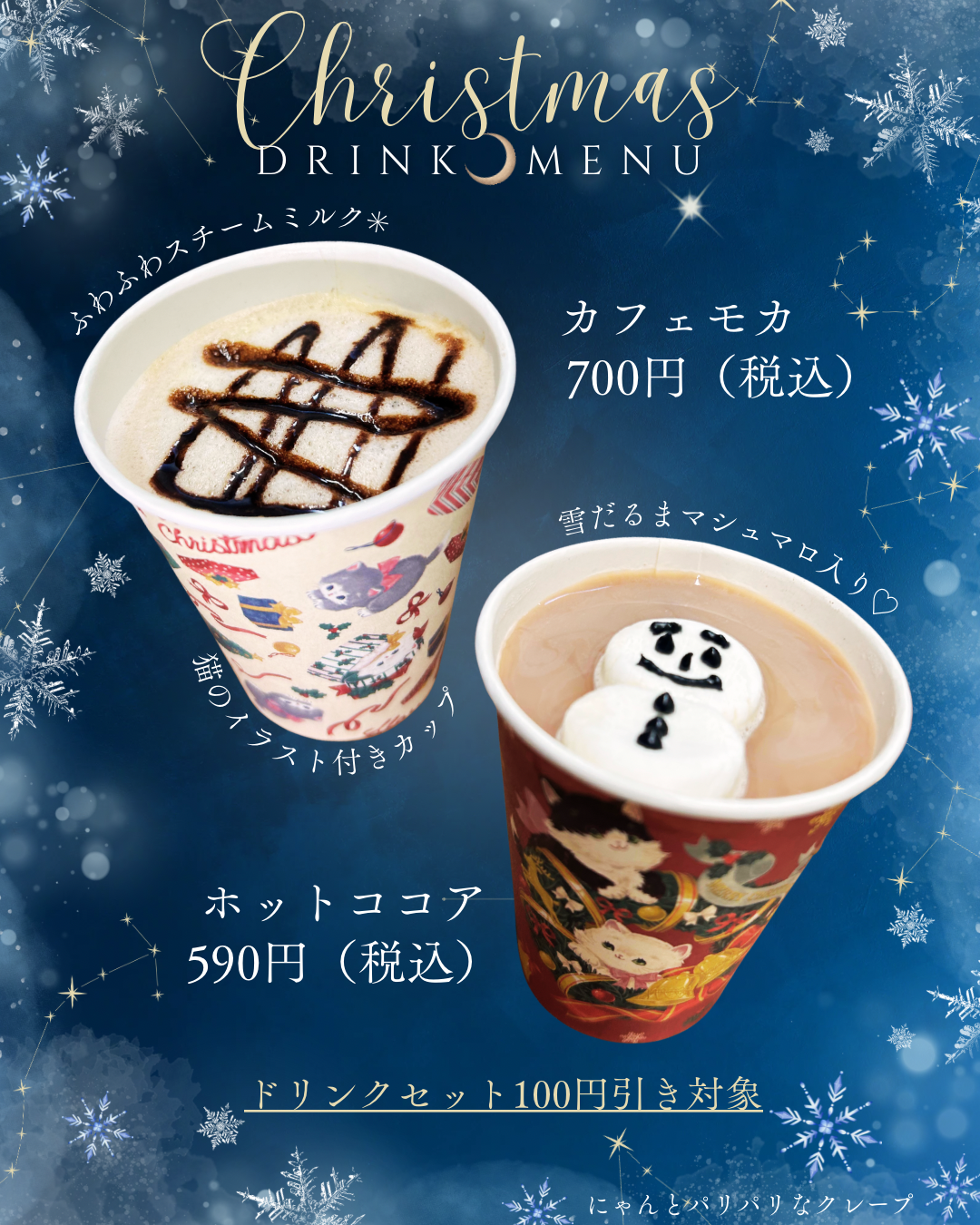 『ホットココア』590円(税込)と『カフェモカ』700円(税込)の2つになります😸