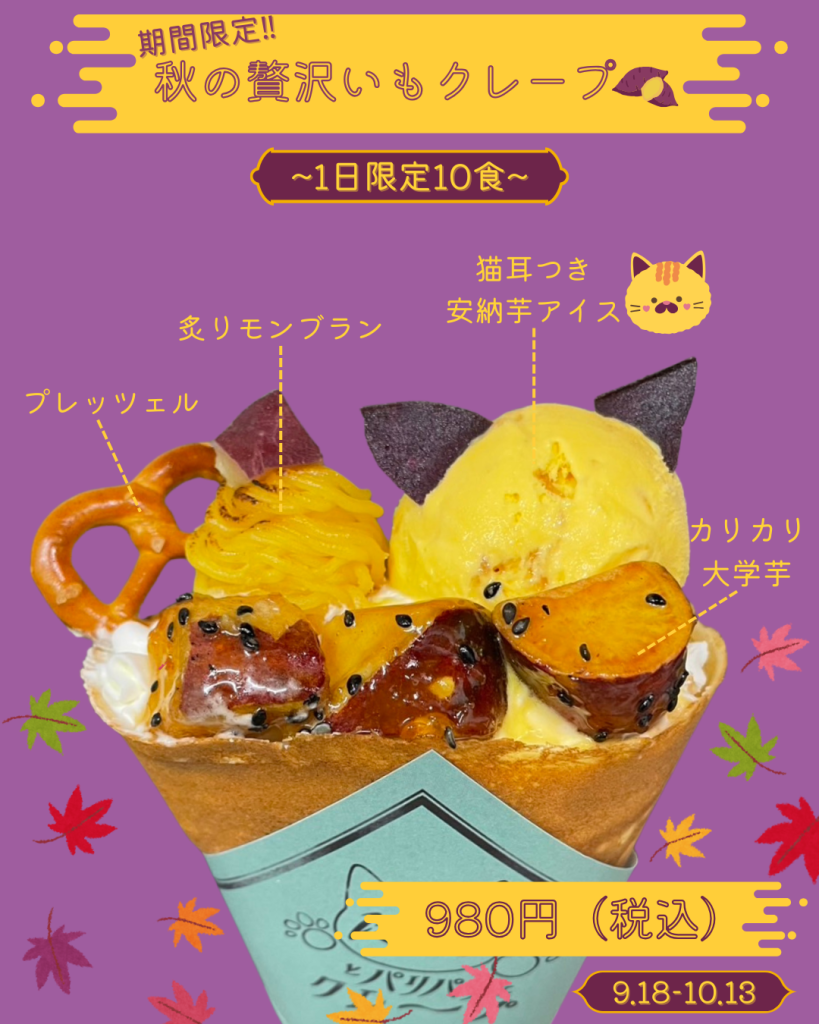 9月18日から『秋の贅沢いもクレープ』の販売が始まりました🍠✨