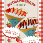 本日からいちごのクレープの発売が開始致しました!!🍓✨✨ いちご好きの皆様、大変お待たせいたしました🥹 旬の国産苺がたっぷり入ってい... 続きを読む